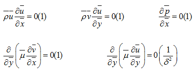 We know the non-dimensional form of X-momentum Eq. (20.6). Consider the order of magnitude form of each term as,