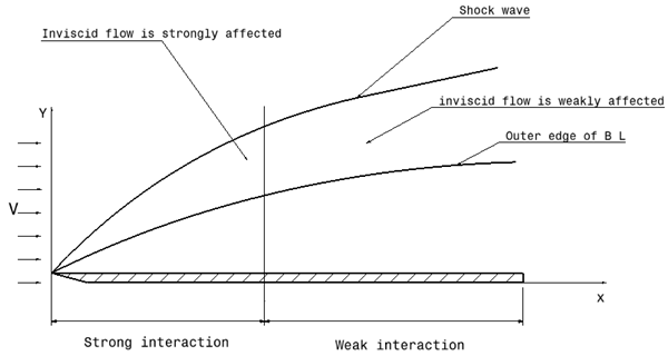 Fig.29.1 Strong and weak interaction regions for hypersonic flow over flat plate.