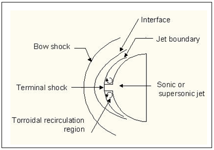 Fig. 40.2. Typical flowfield with counterflow injection based drag reduction technique