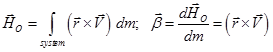 . Since, the fluid particles are non-rigid and have variable velocities, one must calculate the angular momentum by integration of the elemental mass (dm). It is in contrast to solids where the angular momentum is obtained through the concept of moment of inertia. At, any fixed point ‘O', the instantaneous angular momentum and its corresponding intensive properties are given by,