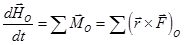 By, angular momentum theorem, the rate of change of angular momentum must be equal to sum of all the moments of all the applied forces about a point ‘O' for the control volume.