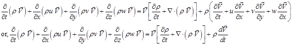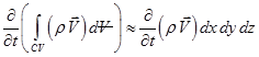 When this equation is applied to the elemental control volume shown in Fig. 2.6.1, the volume integral derivative (second term of RHS of Eq. 2.6.1) reduces to,