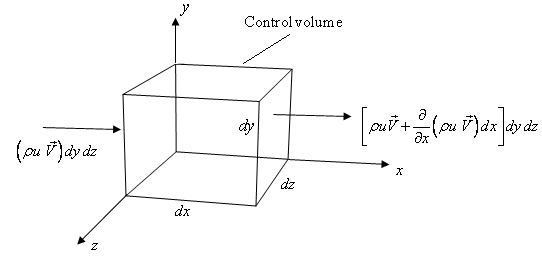 Fig. 2.6.1: Elemental control volume with inlet and outlet momentum flux.