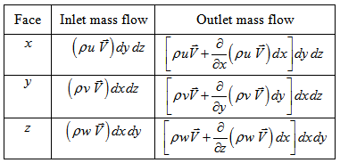 The momentum flux terms appear in all six faces with three inlets and three outlets. As shown in Fig. 2.6.1, these terms can be summarized in the following table.