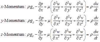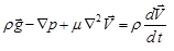 Thus, the differential momentum equation for Newtonian fluid with constant density and viscosity is given by,