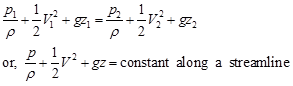 where, ds is the arc length along the streamline. Eq. (2.6.24) is known as the Bernoulli's equation for frictionless unsteady flow along a streamline. Again if the flow is incompressible