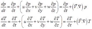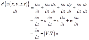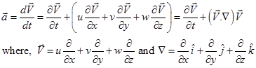 is called a “convective acceleration”. The total time derivative is called as “substantial/material” derivative. This field concept can be applied to any variable (vector or scalar). For example, one may write the total derivative for pressure and temperature field as,