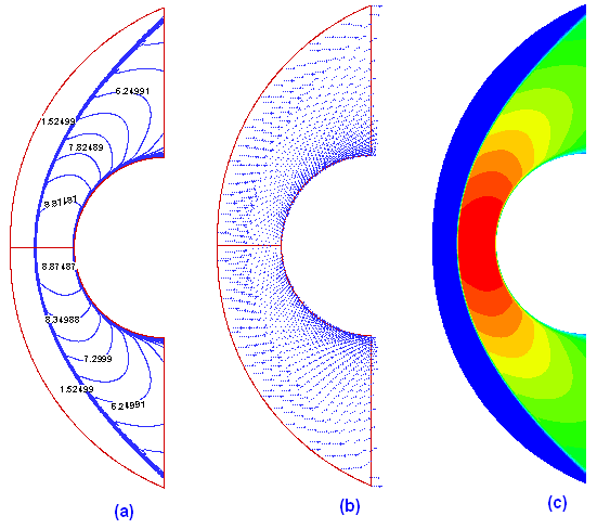 Fig. 3.1.2: Graphical representation of data analysis technique: (a) profile plot, (b) vector plot, (c) contour plot.