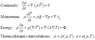 The differential relations for fluid particle can be written for conservation of mass, momentum and energy. In addition, there are two state relations for thermodynamic properties. They can be summarized as;
