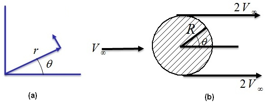 On the surface of the cylinder shown in Fig. 3.7.1, the velocity distribution can be obtained from Eq. (3.7.2) i.e.