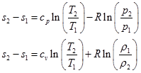 Eqs. (4.1.4 & 4.1.5) are the different forms of second law of thermodynamics . In order to calculate the change in entropy of a thermodynamic process, two fundamental relations are used for a calorically perfect gas by combining both the laws of thermodynamics;