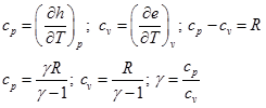 is the universal gas constant. In a calorically perfect gas, the other important thermodynamic properties relations are written as follows;