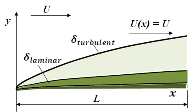 may be defined. On a flat plate with a sharp leading edge in a typical free stream air flow, the transition occurs between the Reynolds number ranges of
