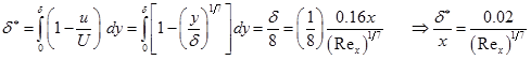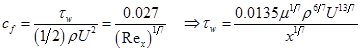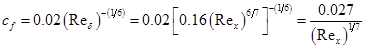 for a laminar boundary layer. It means that a turbulent boundary layer grows at a faster rate compared to that of a laminar boundary layer. Eq. (5.11.5) is the solution of a turbulent boundary layer because all the boundary layer parameters can be obtained from this equation as given below;