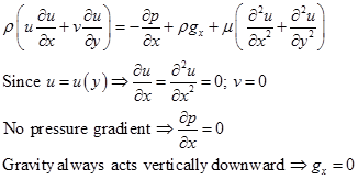 As it is obvious from Eq. (5.2.1), that there is only a single non-zero velocity component that varies across the channel. So, only x- component of Navier-Stokes equation can be considered for this planner flow.