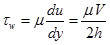 of the fluid does not play any role in the velocity profile. The shear stress at the wall