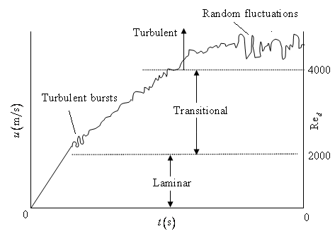 Fig. 5.5.2: Schematic representation of laminar to turbulent transition in a pipe flow.