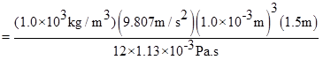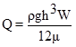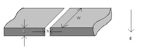 PROBLEM 1: A flat roof of a building is constructed of precast concrete slabs of width W = 1.5 m and depth L = 0.2 m, as shown in the figure. Through an oversight, an end joint between two slabs was not sealed, leaving a crack of width h = 1.0 mm. When it rains, the crack fills with water which leaks into the interior of the building. Calculate the volume flow rate of rain water through the crack assuming steady laminar flow (plane poiseuille) flow with ![]()
