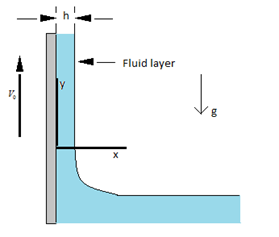 This result indicates that the pressure does not vary over a horizontal plane, and since the pressure on the surface of the film (x = h) is atmospheric, the pressure throughout the film must be atmospheric. The equation of motion in the y direction thus reduces to