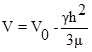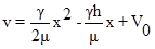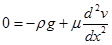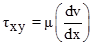 On the film surface (x = h) we assume the shearing stress is zero--that is, the drag of the air on the film is negligible. The shearing stress at the free surface (or any interior parallel surface) is designated as ![]()