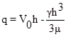 With the velocity distribution known we can determine the flow rate per unit width, q, from the relationship