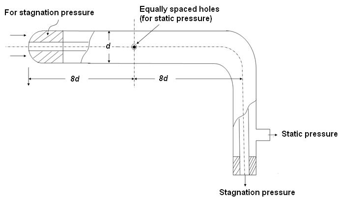 using a Prandtl Pitot Static tube are made in a similar way as shown in Fig. 7.6.4. Subsequently, the isentropic relation is used to determine the flow Mach number.