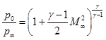 refers to stagnation and free stream conditions, respectively. Had the flow been incompressible, the density term in Eq. (7.6.1) becomes constant quantity and the stagnation and static pressure difference is expressed as follows: