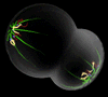 The chromosomes moved close to the spindle pole regions, and the spindle mid-zone begins to clear. In this middle region of the spindle, a thin line of vesicles begins to accumulate. This vesicle aggregation is an indication to the formation of a new cell wall that will be situated midway along the length of the original cell and hence form boundary between the newly separating daughter cells.
