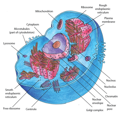 An animal cell is a form of eukaryotic cell that makes up many tissues in animals. Figure 7 depicts a typical animal cell. The animal cell is distinct from other eukaryotes, most notably plant cells, as they lack cell walls and chloroplasts, and they have smaller vacuoles. Due to the lack of a rigid cell wall, animal cells can adopt a variety of shapes, and a phagocytic cell can even engulf other structures. There are many different cell types. For instance, there are pproximately 210 distinct cell types in the adult human body.