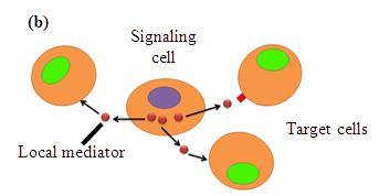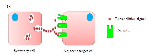 Figure 2 (a): Signaling molecules released by a secretory cell affect only the adjacent target cells.