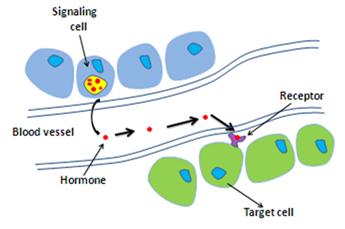 Figure 1: Signaling molecules released from cell and transported by the blood to the target cell