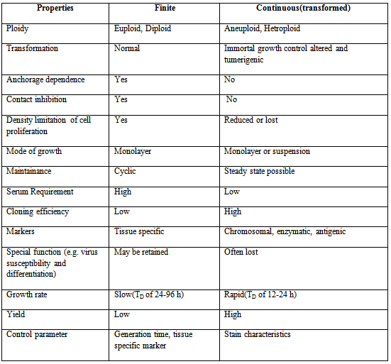 Table 1: Properties of finite and continuous cell lines