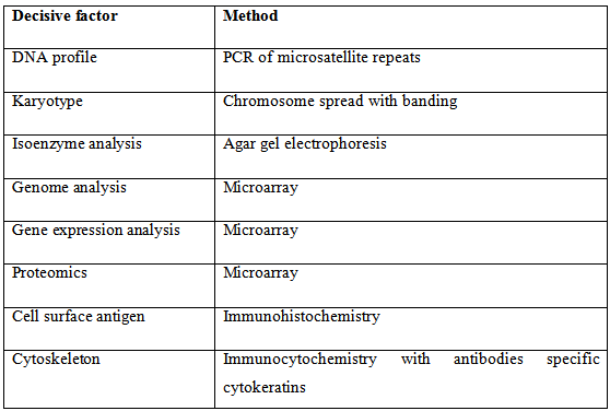 Table 1: Decisive factors for characterization of cell lines and corresponding methods