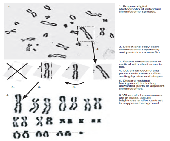- Karyotype : Digitally photograph about 10 or 20 good spreads of banded chromosomes. Image analysis can be used to sort chromosome images automatically to generate karyotypes.