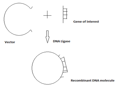 - The vector DNA, foreign DNA and DNA ligase enzyme are added together at appropriate concentrations which results in the covalent linkage between the ends of DNA fragments.