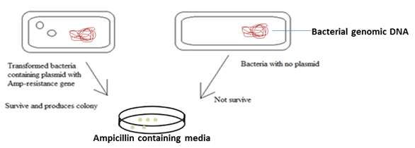 Selection of the transformed cells from the non-transformed population is done by using selectable marker genes that confers resistance to antibiotics. Hence, cells only having the vector with the resistance gene for the antibiotic would grow in the selection media containing the antibiotic (ampicillin, tetracycline etc.); while the non-transformed cells would die.