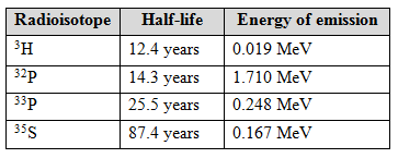 Properties of radioisotopes used for labeling DNA and RNA probes:
