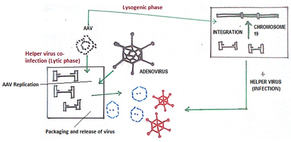 - AAV life cycle comprises two phases-lytic and lysogeny.