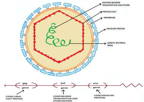 A retrovirus, on binding to a cell surface receptor, enters the cell where it reverse transcribes the RNA into double-stranded DNA. Viral DNA gets integrated into the cell chromosome to form a provirus. Cellular machinery transcribes, processes the RNA and undergoes translation into viral proteins. The viral RNA and proteins are then assembled to form new viruses which are released from the cell by budding (Figure 5-1.4.4(b).).