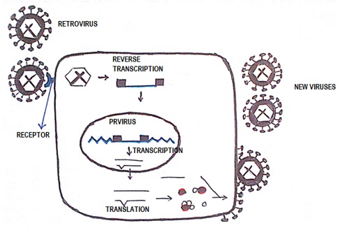 Figure 5-1.4.4(b): Replication cycle of retroviruses.