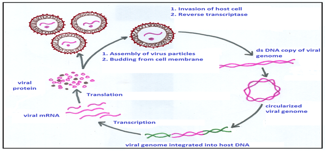 Retroviruses are RNA viruses which possess a reverse transcriptase activity, enabling them to synthesize a complementary DNA. Following infection (transduction), retroviruses deliver a nucleoprotein complex (pre-integration complex) into the cytoplasm of infected cells. The viral RNA genome is reverse transcribed first and then integrates into a single site of the chromosome.