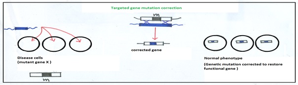 Figure 8-1.3.5: This is used for disease caused by mutation. The corrected gene will be swapped by the mutant gene X(m). Then diseased cells will become normal after the correction of mutation by gene therapy.