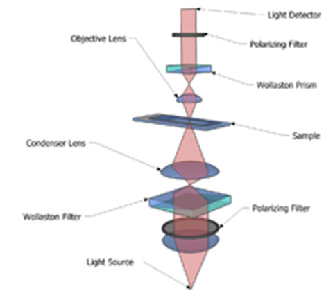Fig. 5. The components of the basic differential interference contrast microscope setup.
