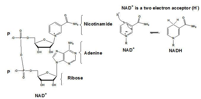 Nicotinamide adenine dinucleotide (NAD+) and its phosphorylated analog, NADP+, are important coenzymes that participate in a number of biological processes involving electron transfer. NAD+ contains an AMP moiety as part of the molecule: