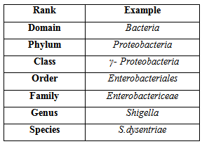 A species is a collection of strains that have a similar G+C composition and 70% or greater similarity as judged by DNA hybridization. Ideally a species also should be phenotypically distinguishable from other similar species. An example of hierarchy in taxonomy is given below.