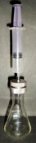 Figure 2.9: (A) Syringe with filter assembly fitted on conical flask,