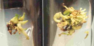 Plant regeneration from isolated cells, protoplasts or unorganized mass of cells (callus) is generally more difficult than that obtained from the intact explants such as, cotyledons, hypocotyl segments and immature embryos. The regeneration obtained through de novo differentiation of shoot buds or somatic embryogenesis directly from explants may also exhibit genetic variability.