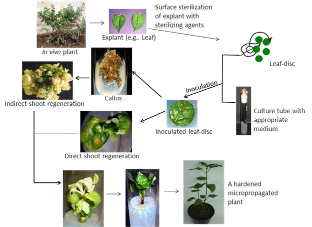 Induction is a multistep process. A schematic representation of adventitious shoot proliferation from leaf-disc culture is presented in (Figure 5.5). A series of intracellular events, collectively called induction, occur before the emergence of morphologically recognizable organs.