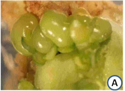 Neomorphs were suppressed embryos with green, smooth, shiny surface and solid interior (Figure 8.7A). Although they were epidermal in origin like somatic embryos with heart shape notch but showed monopolar germination and no clear cut radicular region (Figure 8.7B).