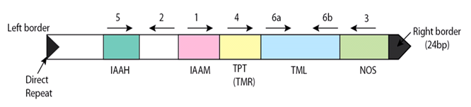 Figure 25.2: Nopaline type Ti plasmid T-DNA (Arrows indicating the direction of transcription and number indicates the transcriptional unit)
